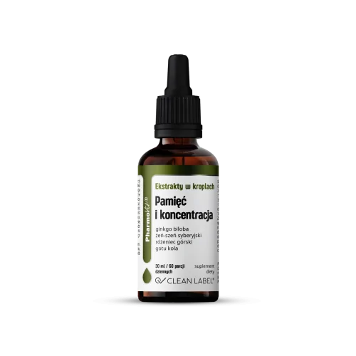 Memory and concentration liquid extracts is a composition of 4 plant extracts (glycerine and water) in the form of drops. Siberian ginseng contributes to optimal mental activity and supports the body in states of fatigue and convalescence. Gotu kola helps to maintain cognitive functions. Rhodiola rosea contributes to normal blood circulation which is related to the efficiency and reactivity of the brain. Maidenhair tree, known as ginkgo biloba, supports peripheral circulation which can improve vision and hearing. It also helps to maintain proper cognitive functions.
