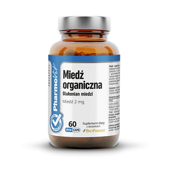 Organic copper contains an organic, bioavailable form of copper. The composition was enriched with BioPerine® black pepper extract, and the whole was enclosed in vegetable capsule. Black pepper supports digestion and nutrient absorption. Copper helps in the proper functioning of the immune and nervous system, as well as protects cells against oxidative stress. It also helps to maintain normal hair and skin pigmentation and regular energy metabolism.