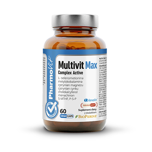 Multivit Max is a dietary supplement containing a complex of selected vitamins and minerals with a broad spectrum of effects. Black pepper supports digestion and nutrient absorption as well as enhances the effectiveness of herbal ingredients.