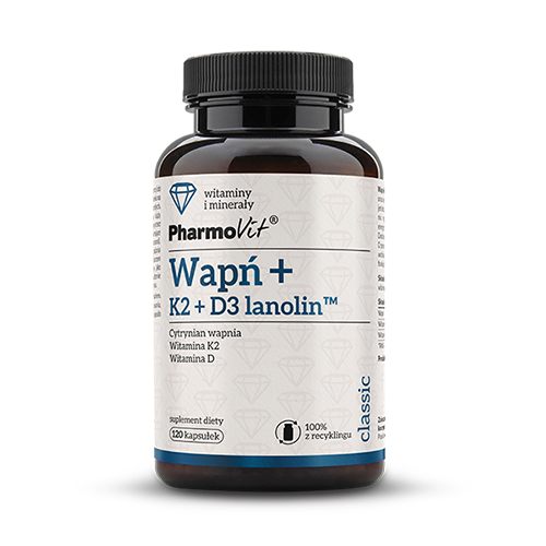 Calcium+K2+D3 lanolin™ is a composition of bioavailable, organic calcium, active and stable form of Vitamin K2 and Vitamin D in the form of cholecalciferol obtained from lanolin. Calcium is needed to maintain healthy bones and teeth and helps in the proper functioning of muscles as well as contributes to maintaining normal energy metabolism. Vitamins D and K also help to maintain healthy bones. In addition, Vitamin K contributes¬ to normal blood clotting. Vitamin D helps to maintain a normal level of calcium in the blood, helps in the proper absorption/use of calcium and phosphorus and supports the proper functioning of the immune system.
