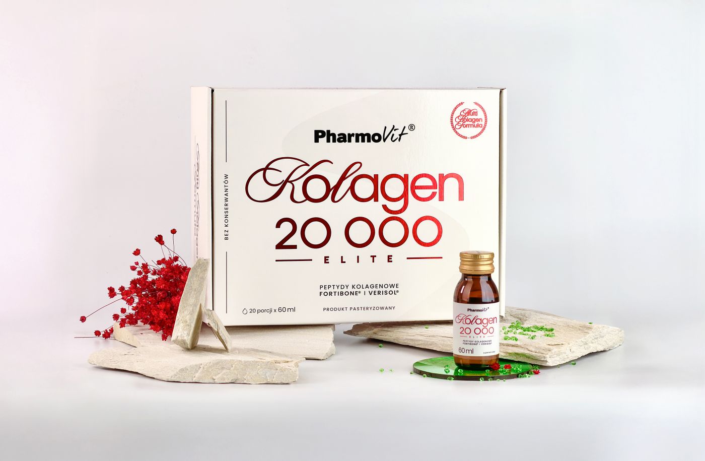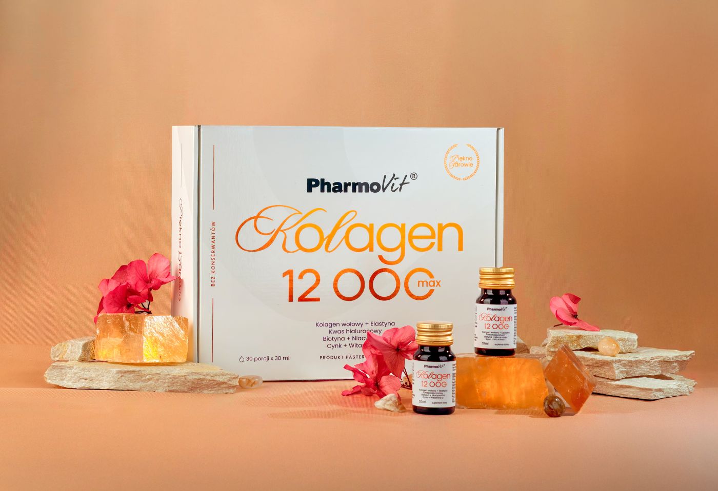 Kolagen to białko podporowe, które odpowiada za wytrzymałość, elastyczność oraz nawilżenie skóry. Z upływem lat i pod wpływem czynników środowiskowych jego ilość w organizmie maleje. Skóra traci jędrność, pojawiają się zmarszczki, spada poziom nawilżenia, a regeneracja tkanek przebiega wolniej. W Pharmovit® tworzymy produkty kolagenowe odpowiadające na różnorodne potrzeby – zarówno w obszarze codziennej pielęgnacji, jak i aktywnego stylu życia. W ofercie znajdują się kolageny w różnych formach – kapsułek, proszków oraz płynów – a także w zróżnicowanych dawkach, dopasowanych do indywidualnych preferencji.